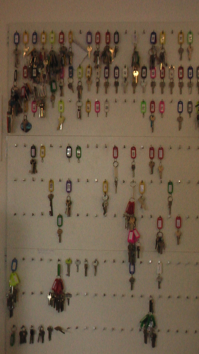 Hussein’s sleutelbord in zijn kantoor aan de Middenweg 33